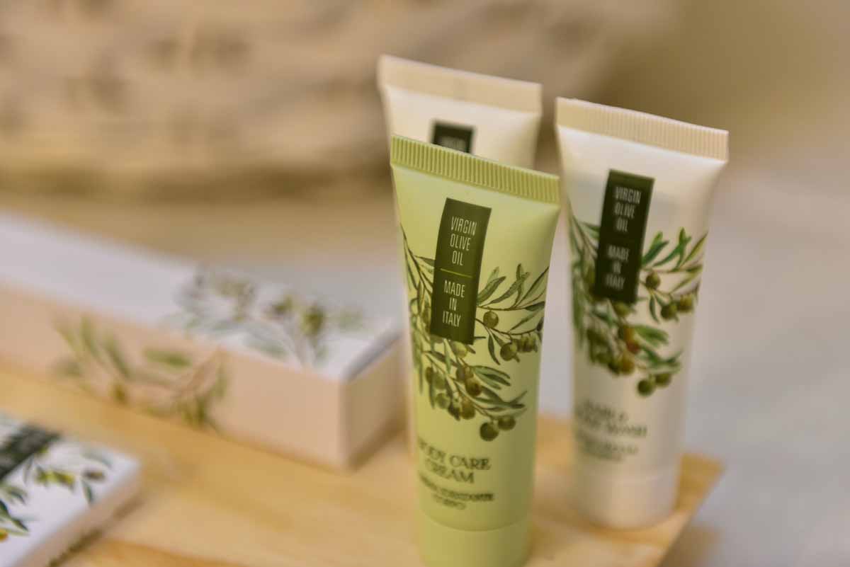 Il kit cortesia comprende tutto l’occorrente per il tuo benessere con trattamenti a base di olio di oliva, ingrediente rinomato per le sue capacità idratanti e nutritive.