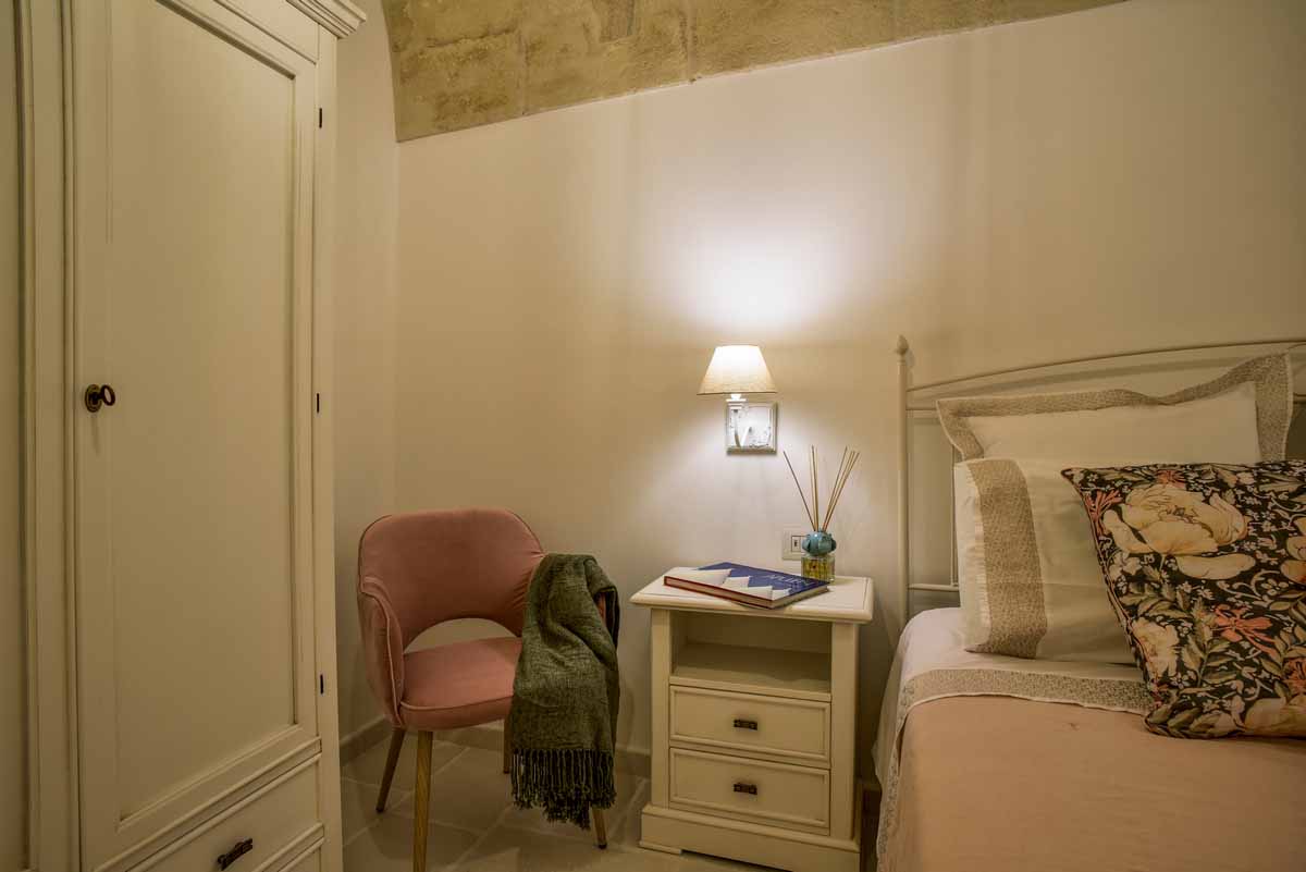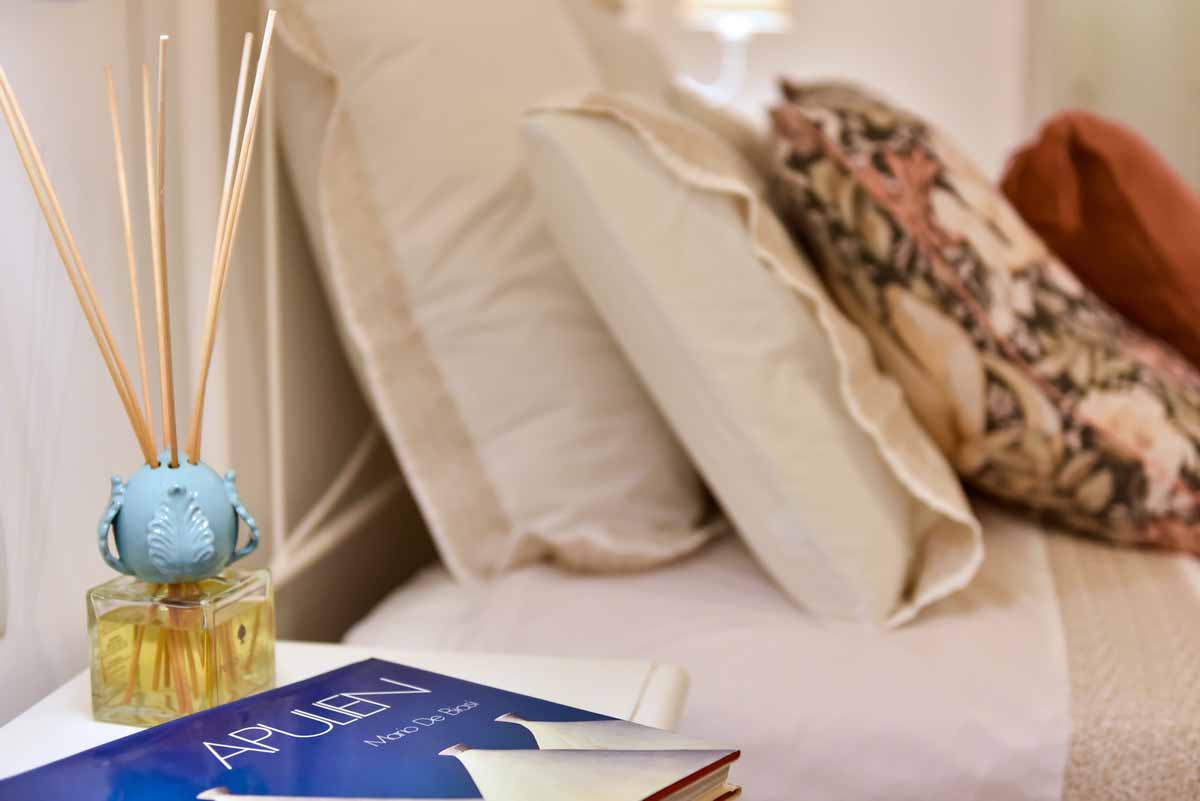 Nella camera da letto, autentico scrigno di eleganza ed essenzialità, il clima è magico e sognante.