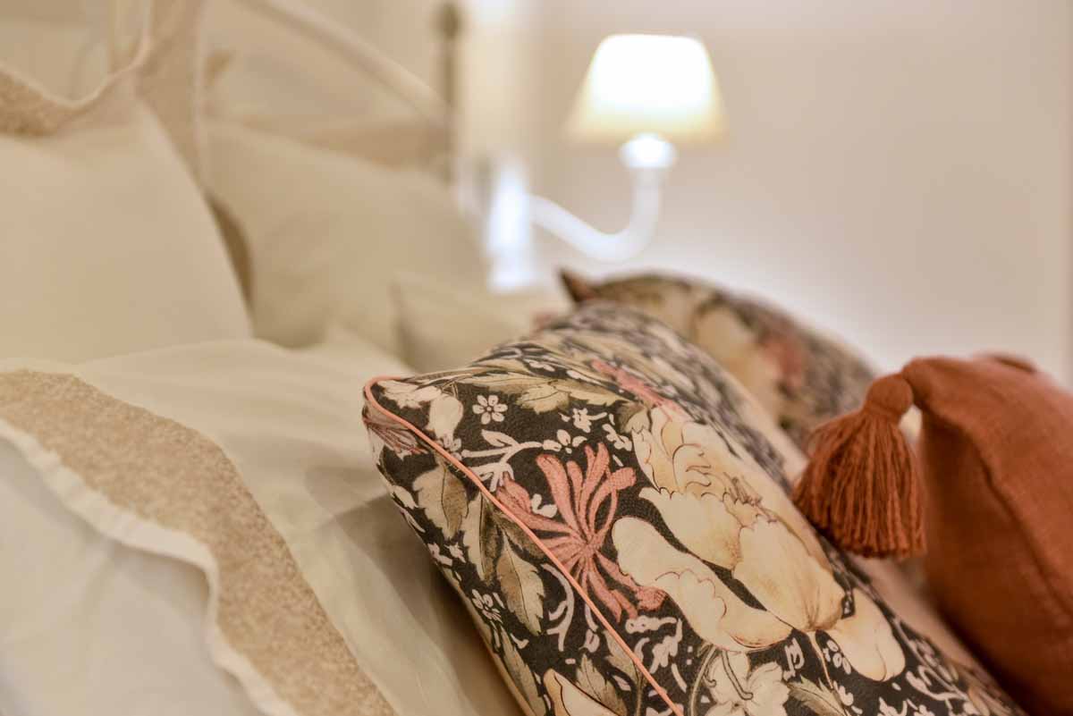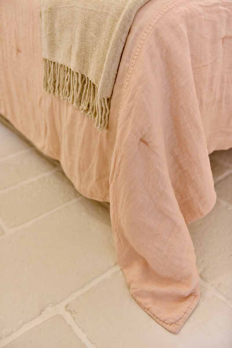 Nei tessili, sapientemente coordinati, deliziose fantasie floreali si combinano con romantiche e delicate nuance rosa antico, in perfetto stile provenzale.